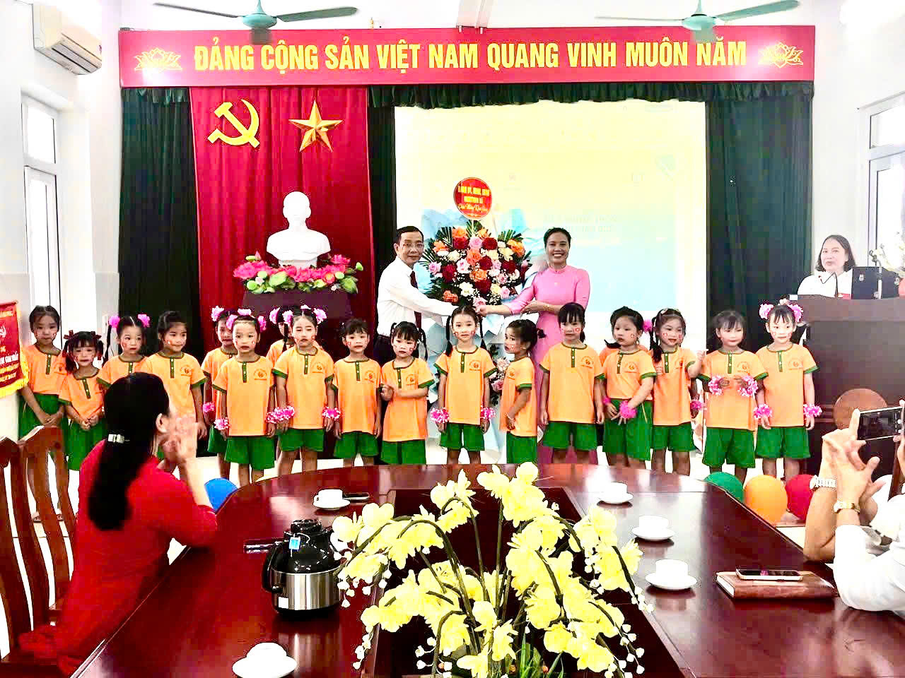 - Ông: Phạm Văn Tùy - Chủ tịch MTTQVN xã, Bà: Lương Thị Nhung - Phó ban xây dựng Đảng, Ông Nguyễn Sĩ Tuân - Trưởng ban Kinh tế HĐND xã, cùng các cô giáo và đại diện các em học sinh khối 5 tuổi của trường.